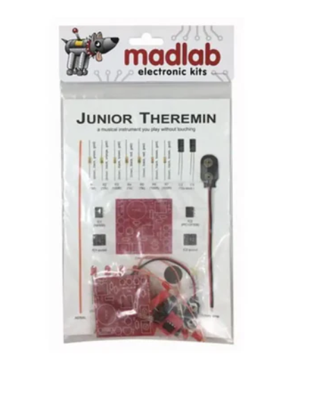 The Velleman Junior Theremin Electronic Kit is the first music synthesizer. The Junior Theremin is a scaled-down version of this classic electronic instrument. When you move your hand toward or away from the antenna, the Theremin responds by changing the pitch of the note it plays. It can play a single note, or it can change the pitch of a single note.