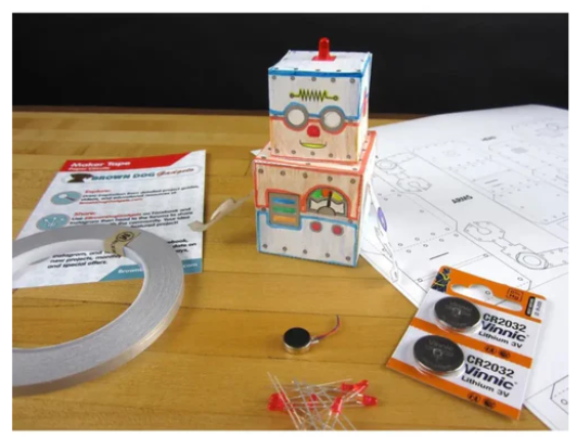 • Origami Circuits Classroom Kit includes origami paper for quick and easy construction. Follow one of the many project guides or create your own. Since Maker Tape sticks to almost anything, you can easily add motors and lights anywhere you want.
