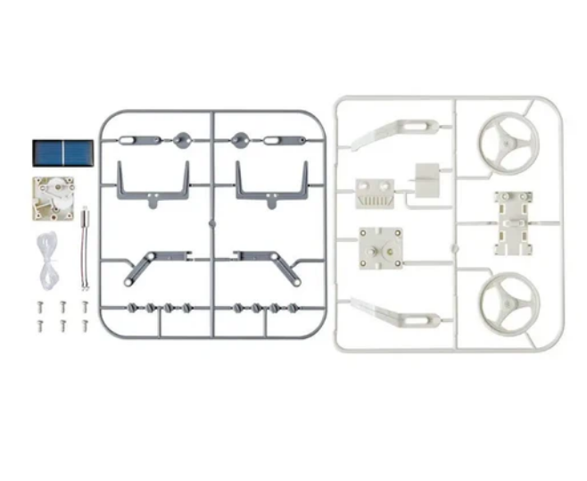 •  4M Green Science 3 in 1 Mini Solar Robot Kit (French) is a solar, compact multi-functional device. This extraordinary 3-in-1 mini solar robot provides an fascinating educational experience. It runs in three different ways: it can climb ropes, walk as a robot, and run when configured as a racer.