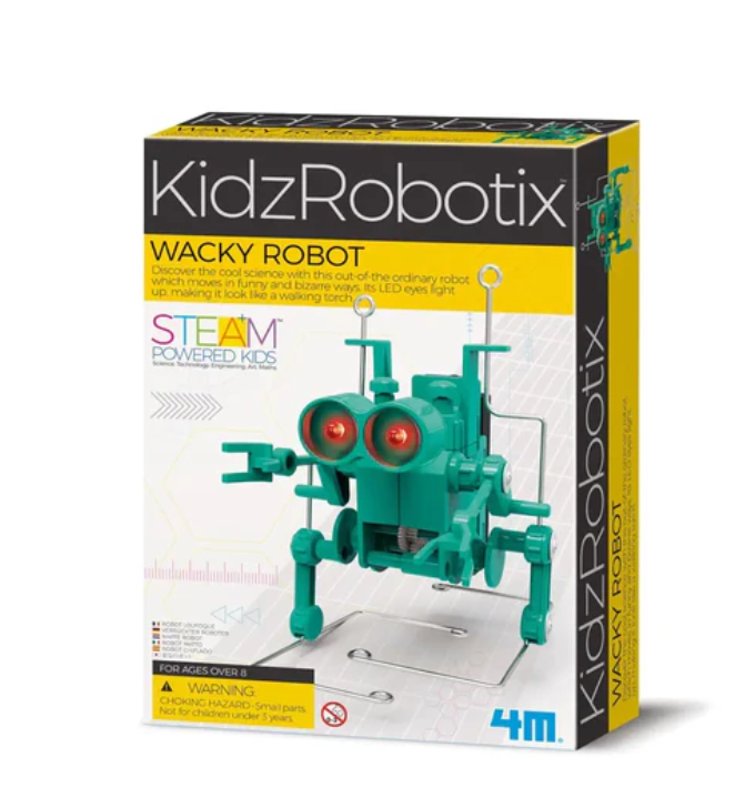 The 4M KidzRobotix quirky robot kit is an interesting technological product that utilizes unique scientific principles to move in peculiar and fun ways. This extraordinary robot is equipped with long-range LED eyes and movable arms, bringing you endless adventures. It is suitable for people aged 8 and above.