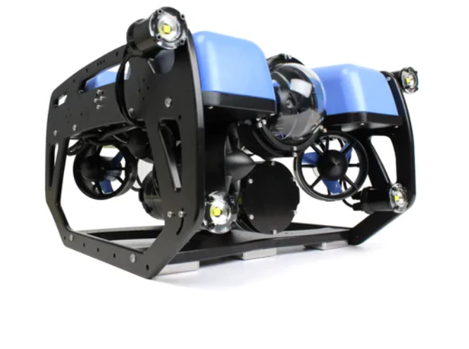 • The BlueRobotics BlueROV2 (Aluminum - 300 meters) is a high-performance underwater remotely operated vehicle (ROV) known for its affordability and versatility. With six and eight thruster configurations, a range of accessories, and open-source software, it is a highly flexible and scalable underwater exploration tool. The BlueROV2 has a wide range of applications and has been deployed in thousands of applications around the world.