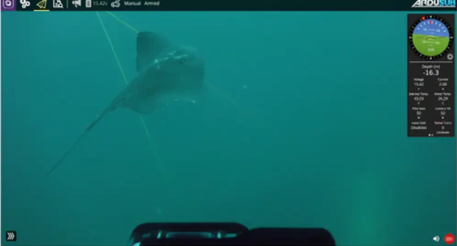 • The pilot controls the ROV via a laptop and gamepad controller using the open-source QGroundControl application, which provides live video streaming, sensor feedback, and configuration options. Suitable for both beginners and advanced users, the BlueROV2 requires only a few additional components to operate: a laptop, a gamepad controller, batteries, and a charger.