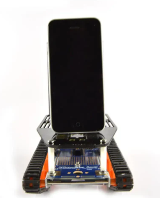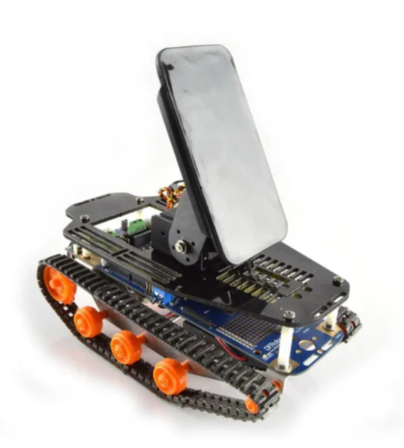 DFRobotShop Rover V2- Arduino compatible tracked robot (smartphone development kit) is a multifunctional mobile robot tank based on the popular Arduino Uno USB microcontroller Rev 3 microcontroller. Rover uses the popular Tamiya dual motor gearbox and Tamiya track and wheel sets. The DFRobotShop Rover PCB integrates the standard Arduino Uno (surface mount ATMega328), L293B motor driver (connected to pins 5 to 8), voltage regulator, and prototype design area, while contributing to the mechanical structure of the robot. The onboard voltage regulator allows the use of voltages as low as 3.7V to~9V * to power the entire circuit board