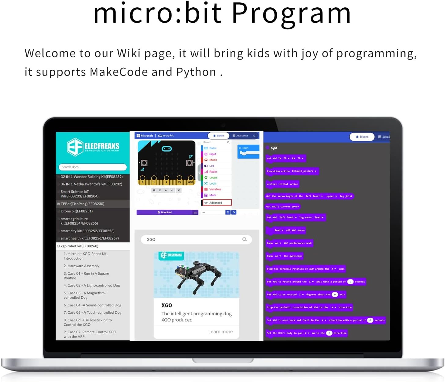 ELECFREAKS microbit Robot Xgo Kit, 12 Removable Joints DIY Programmable Full Metal Bionic Robot Kit, STEM Education Project for Open Source Hardware (No Micro:bit)
