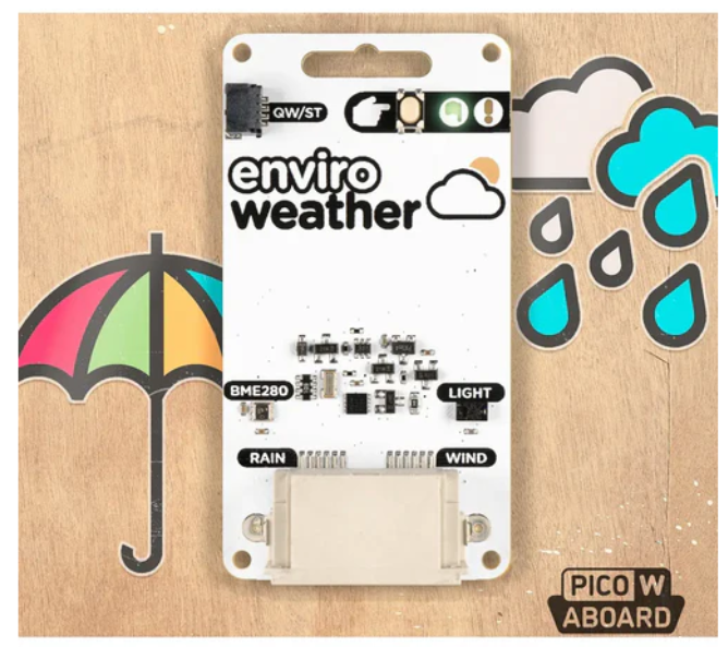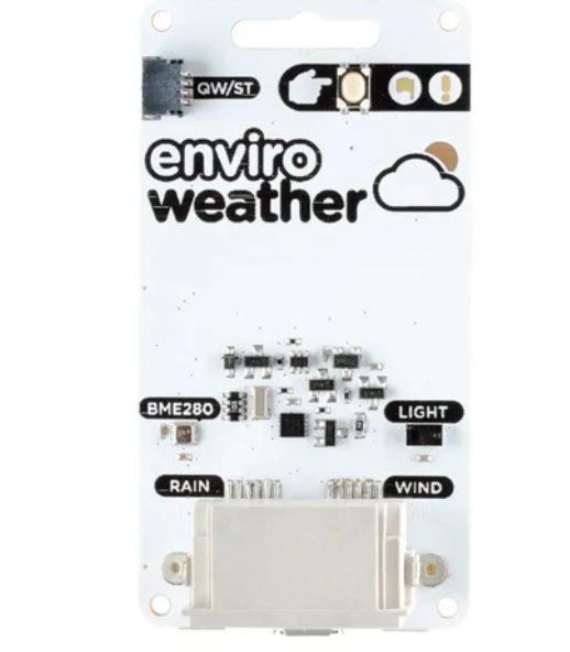 The Enviro Weather Pico Board - Weather Monitoring Device is a wireless climate and environmental monitoring system that allows you to easily connect weather sensors. It is equipped with sensors that can measure temperature, humidity, pressure and brightness.