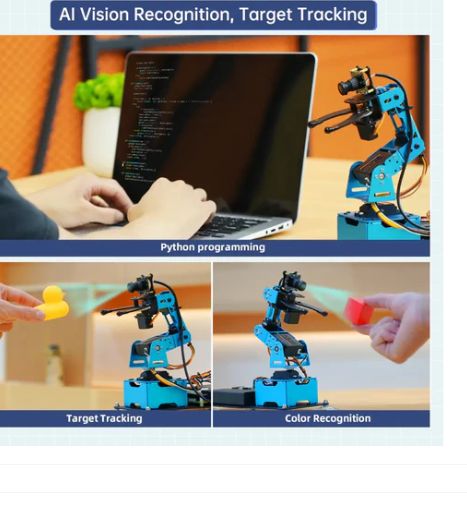 • Hiwonder Armpi Mini 4DOF visual robotic arm, supports Python and OpenCV, suitable for beginners (without Raspberry Pi), equipped with inverse kinematics algorithm and high-definition camera, can be programmed in Python, and can perform functions such as color recognition, color classification, target tracking, and intelligent stacking. It is enabling machine vision OpenCV、 The perfect open-source robotic arm for learning inverse kinematics algorithms and more.