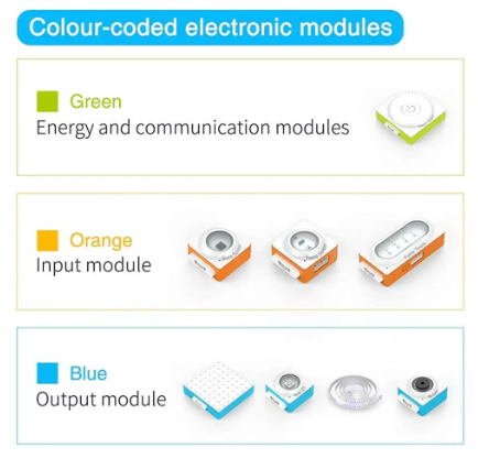 • The Makeblock Neuron Artist Kit contains 8 electronic blocks and guides, Mastering science through play: Each block comes with a guide. The guide tells kids how the blocks work, what the blocks are used for, and how to code the blocks. Pogo Pin Connectors, Instantly Spark Creativity: The magnetic Pogo Pin design allows blocks to be easily connected together. You no longer have to worry about blocks possibly connecting in reverse.