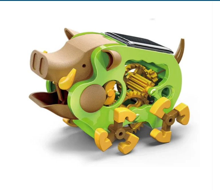 • OWI Robotikit Solar Boar is a fun solar kit that will smile when you solve any confusion. This large figure model, measuring 3.56" x 1.85" x 2.24" is perfect for a do-it-yourself science fair, after-school or summer workshop project, comes with an extra gift for learning mechanical drive and motor theory.