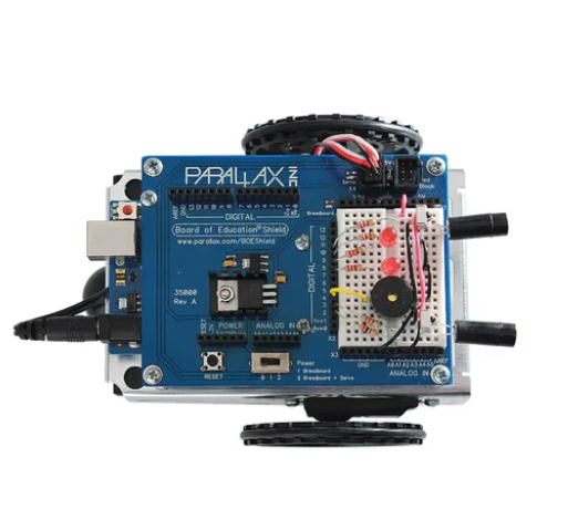 • The Parallax Boe-Bot Robotics Shield Kit for Arduino is a versatile kit that comes with a step-by-step curriculum. The educational board shield plugs into your Arduino and mounts on the popular Boe-Bot robot chassis. RobotC works with this kit. Learn Arduino programming, robotics, and circuit building by following the free, step-by-step web tutorials.