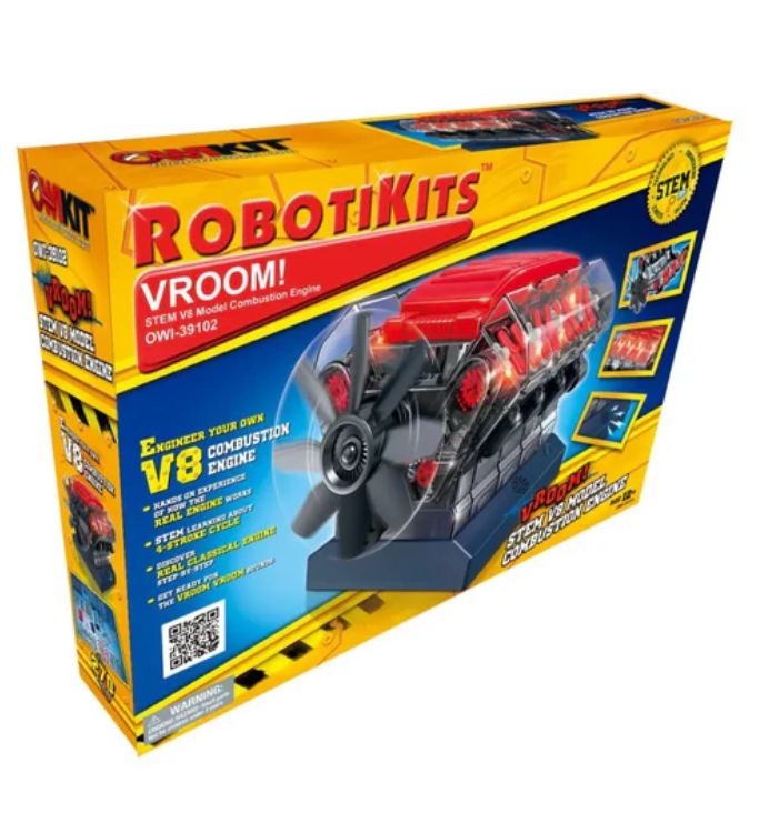After enhancing people's divergent thinking, hands-on flexibility, and satisfying sense of achievement, Vroom! The Stem V8 model internal combustion engine will become a prize trophy on any car enthusiast's desk, bookshelf, or classroom.