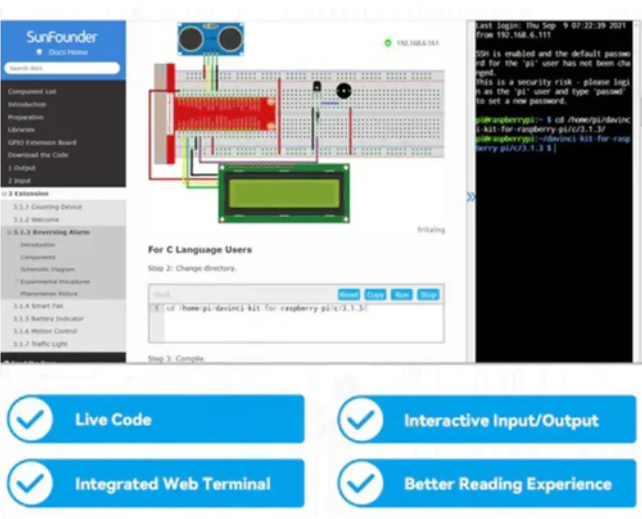 • The SunFounder Da Vinci Raspberry Pi Starter Kit contains 69 basic and advanced projects and is a basic kit for Raspberry Pi beginners. Contains 26 commonly used input/output components and modules, as well as basic electronic devices such as resistors and capacitors, providing strong support for learning programming.