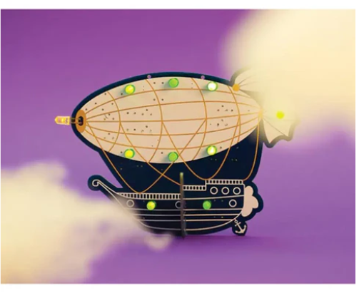 • Features a retro-designed PCB shaped like a vintage zeppelin