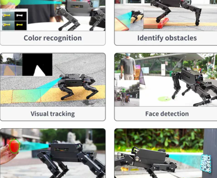 DOGZILLA is a 12 degree of freedom visual AI robotic dog, mainly composed of 6 servos, aluminum alloy brackets, cameras, etc. It can flexibly complete a series of biomimetic actions, achieve all-round motion and six dimensional attitude control. DOGZILLA is equipped with IMU and servo angle sensors, which can provide real-time feedback on its own posture and joint angles. Combined with inverse kinematics algorithms, it can achieve multiple motion gaits. Using Raspberry Pi as its main controller, additionally equipped with laser radar, voice module, etc. Through Python programming and based on the ROS2 system, multiple functions such as AI visual recognition, LiDAR mapping and navigation, and voice control can be achieved.