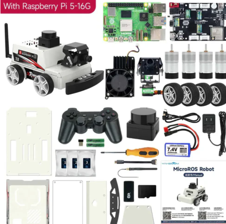 ESP32-Micro ROS 로봇 확장판, 310 코딩 모터, MS200 레이저 레이더, 2DOF 카메라 PTZ, Cool cooler Pi 50 등 하드웨어 장비를 갖췄다.