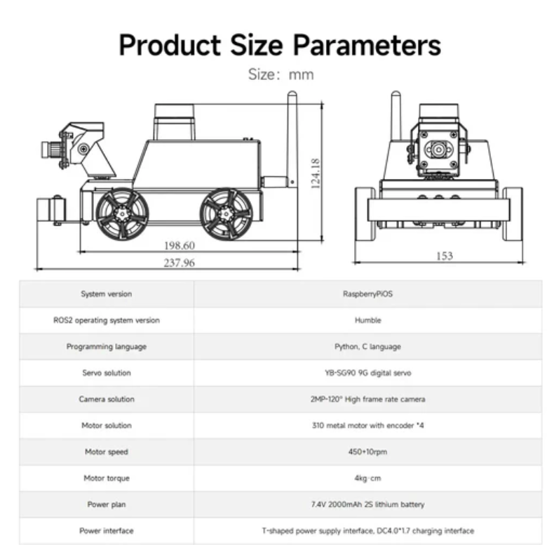 Raspberry Pi OS+ROS2-HUMBLE, Python3을 프로그래밍 언어로 사용합니다.