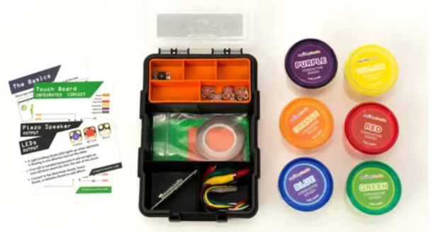 • Crazy Circuits (including Squishy Circuits) teach topics such as circuits, programming, logic, design, sewing techniques, art and design. Users can transform the included Squishy Circuits fabric into interactive programming creations using the included invention board. You can write your own programs or use one of the many online guides or tutorials. You can create your own fabrics, light and sound systems, or even game controllers! Crazy Circuit parts are compatible with LEGO and similar building systems.