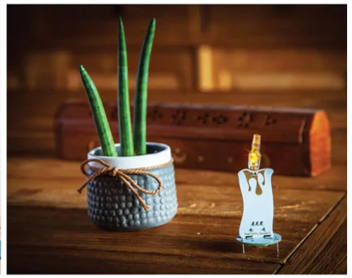 This gadget needs to be powered by a CR2032 button battery, which can provide you with a candlelight atmosphere for up to 24 hours. It is also worth mentioning that the entire kit can be placed in a tea light candle cup. Electronic candles are a safer choice for indoor use because it will not burn down your house if left unattended. Another advantage is that it will not be blown out by the wind if you use it outdoors.