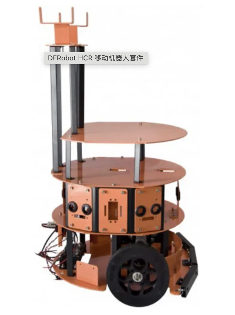 The DFRobot HCR Mobile Robot Kit is a 3 level configurable 2 wheel drive mobile robot platform. You can use individual parts depending on the stage you need, or you can create a 2 stage robot. The kit includes 2 motors, 2 wheels, 3 wheel swivel casters, and all associated plates and hardware. There is a dedicated space to support servos and sensors, and the base has holes for mounting a mini-ITX motherboard.