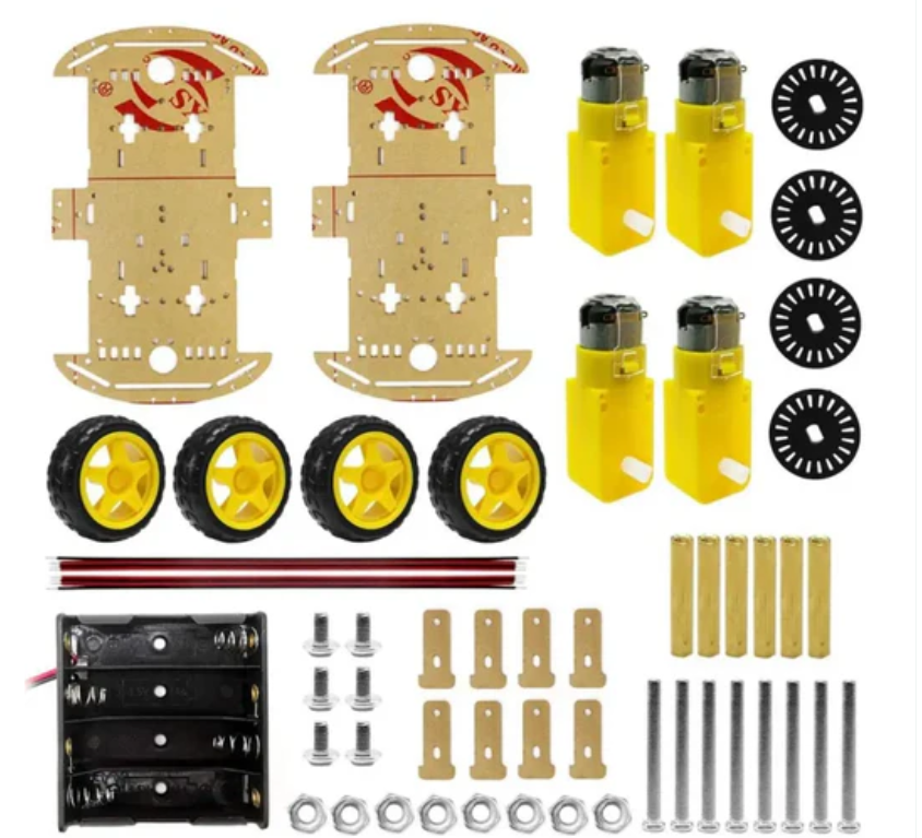 DIY robot car intelligent chassis kit with speed encoder, suitable for Arduino RPi, 4-wheel 2-layer, is an educational learning kit designed specifically for beginners (children), allowing them to gain practical experience in robot technology and expand electronic systems such as Raspberry Pi, Arduino, etc. With the help of systems and other devices, car chassis can perform functions such as tracking, obstacle avoidance, distance testing, speed testing, or wireless remote control.