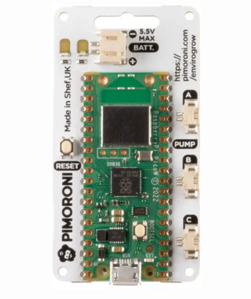 Enviro Grow with Pico W and Accessory Kit is a wireless monitoring system designed to keep your plants healthy. With this system, you can monitor humidity levels using soil sensors and connect a pump to create an automatic watering system. Enviro Grow includes three capacitive humidity sensors, allowing you to monitor up to three pots or trays with seeds individually.