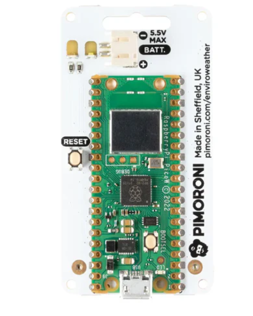 The Enviro Weather Pico Board - Weather Monitoring Device is a wireless climate and environmental monitoring system that allows you to easily connect weather sensors. It is equipped with sensors that can measure temperature, humidity, pressure and brightness.