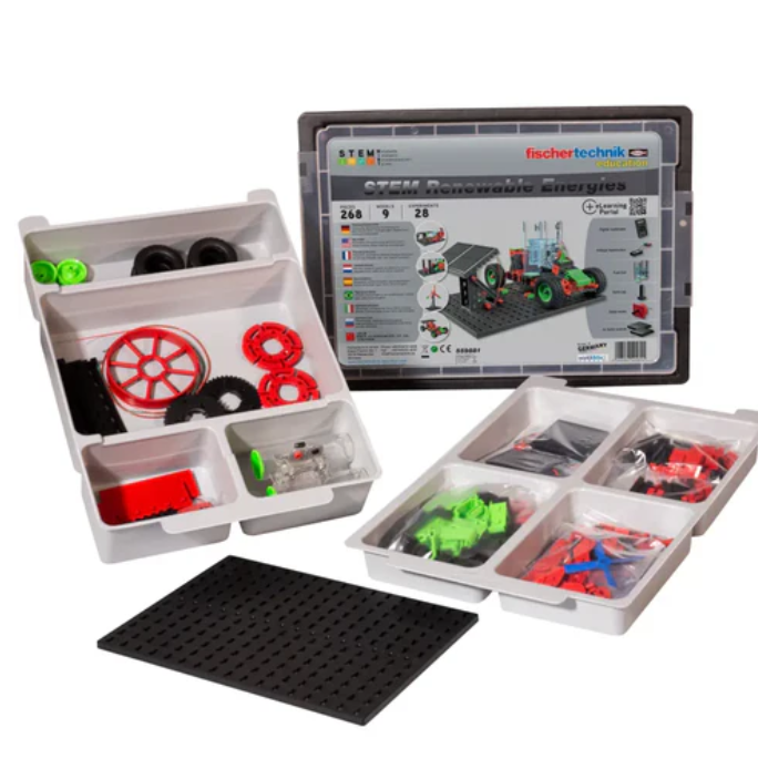 268 components, including one solar motor (2VDC), two solar modules, and a gold covered energy storage unit LED、 Fuel cell, voltage converter, and a multimeter