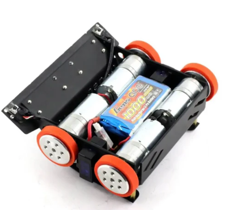 They are directly connected to a motor with a diameter of 25 millimeters. The rated voltage of the motor is 12 V, but it can withstand a maximum overvoltage of 18 V!