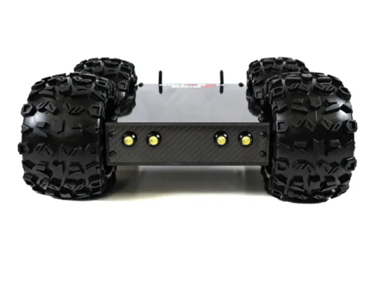 This platform adopts slip steering and larger tires, providing excellent control. Compared to regular 4WD platforms, the enlarged wheels provide higher stability and payload capacity, further enhancing its versatility. The device is perfectly paired with four powerful 313rpm planetary gear motors, allowing it to conquer any terrain at any time. The wheels are directly installed and fixed on the motor shaft adapter. The platform chassis is designed for double-sided driving, with a bottom ground clearance of 2 ¼ inches and a top ground clearance of 2 inches. This gap ensures that both sides of the vehicle maintain a safe distance from the ground.