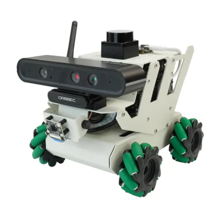 The car is equipped with Mecanum wheels, depth cameras, and TOF LiDAR, which can achieve functions such as mapping navigation, intelligent obstacle avoidance, gesture control, and visual line patrol.