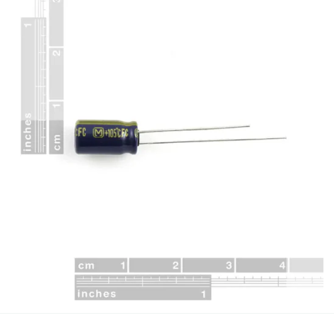 Sparkfun Electrolytic Decoupling Capacitors - 100uF/25V are high quality radial electrolytic capacitors designed to act as effective transient and surge suppressors. They ensure smooth power delivery when connected between power and ground in electronic projects.