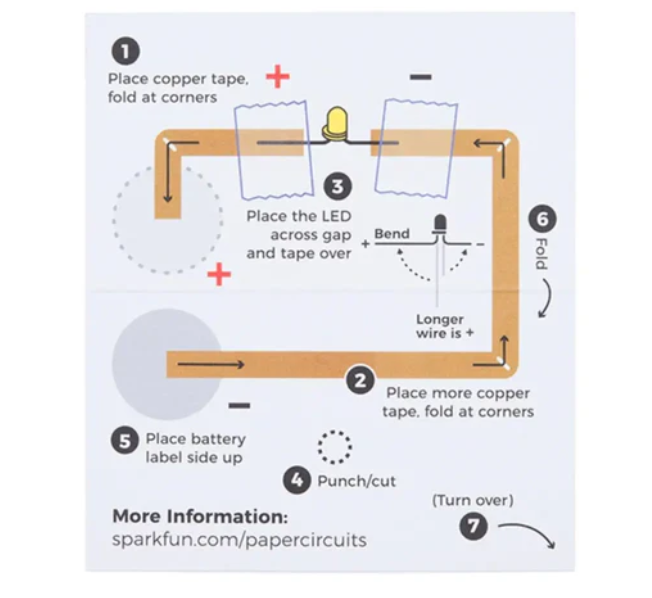 • The SparkFun Paper Circuits Kit teaches the fundamentals of creating circuits, no soldering or coding required! Using the provided template, copper tape, and LEDs, the SparkFun Paper Circuits Kit gives you 10 fun and informative light-up robot cards that only take 5-10 minutes to assemble! No electronics experience required.