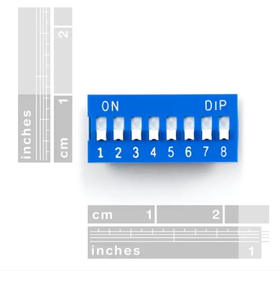 • The Sparkfun DIP Switch - 8 Position features eight individual switch positions with pins spaced 0.1 inches apart, making it ideal for breadboard integration. It can be effectively used as a general purpose control switch for a variety of applications.