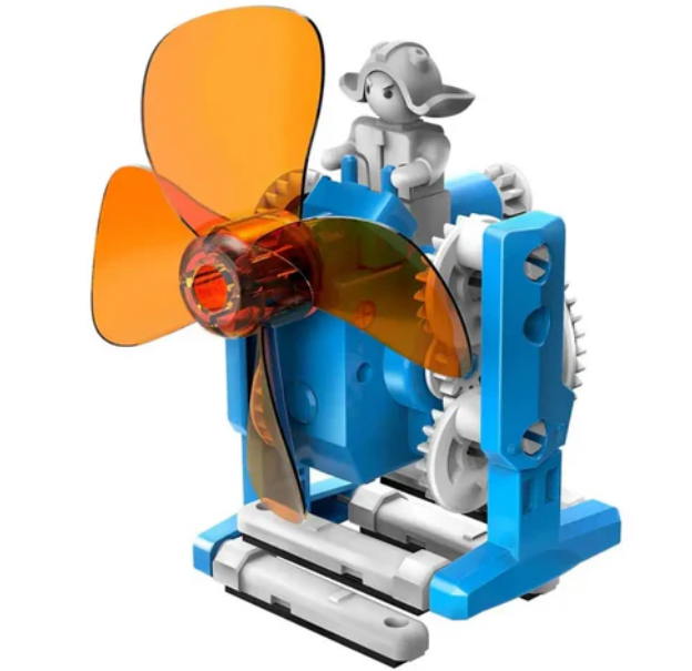 •  Thames and Kosmos wind robots: The 6-in-1 wind-powered machine kit provides the construction of six awesome robots that can move without any battery or electricity. The secret behind these charming machines is one of the oldest energy sources in the world: wind! The full-color manual guides you to assemble 6 models from more than 130 parts at a time.