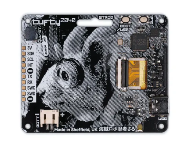 • The Tufty 2040 Programmable Badge (with Accessory Kit) is a hackable, programmable badge with a 2.4" (320 x 240) TFT LCD color display powered by a Raspberry Pi RP2040. This badge is perfect for identification and self-presentation at cybernetics conferences, illegal undersea research facilities, and seedy space station bars.