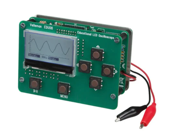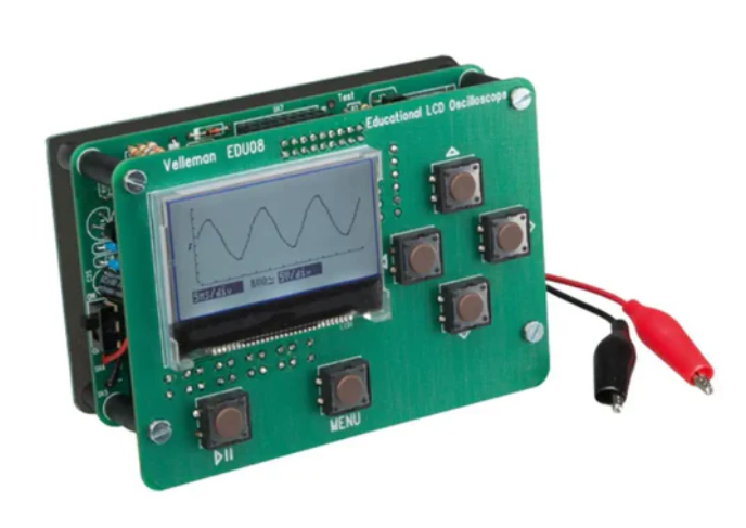 The Velleman Educational LCD Oscilloscope Soldering Kit allows you to learn how to visualize signals by building a DIY oscilloscope.